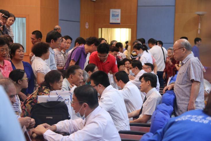 讲座结束后义诊环节 上千患者排队等待专家面对面检查