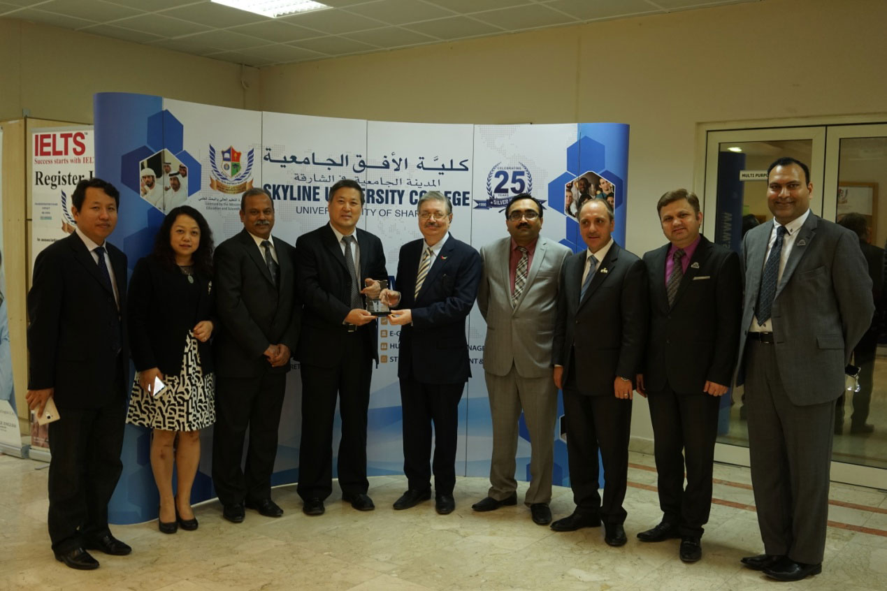 我校代表团与阿联酋地平线大学签约后合影留念