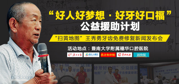 “扫黄地图”王秀勇曾经因举报“扫黄”被打掉四颗牙齿,给生活带来很多不便,也曾获得过“天河好人”的资助。前不久,老人与“天河好人”联系,说出自己心底的梦想——希望自己的牙齿能够得到修复,提升自己的生活质量,再到曾经生活的地方东莞看一看。在“天河好人”的帮助下,王秀勇先生已在穗华口腔医院获得免费牙齿修复的援助。