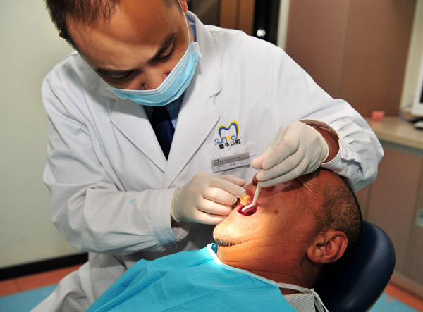 穗华口腔医院张涛医生准备为王秀勇进行牙齿修复
