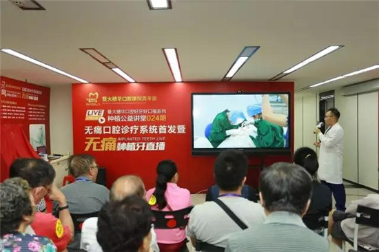 一直以来,种植牙是备受缺牙患者青睐的缺牙修复方案,但是“种牙怕疼”让很多想做种植牙的患者望而却步,为了让更多缺牙患者了解无痛种植牙技术,穗华口腔医院特引进专业的无痛诊疗设备,并启动无痛口腔诊疗系统,吸引了原北京大学副校长林久祥教授、原广东省口腔医院副院长薛国初教授加盟,助力无痛口腔诊疗技术发展,同时直播无痛种植牙手术,让市民更直观、全面地了解无痛种植牙技术的个中细节。