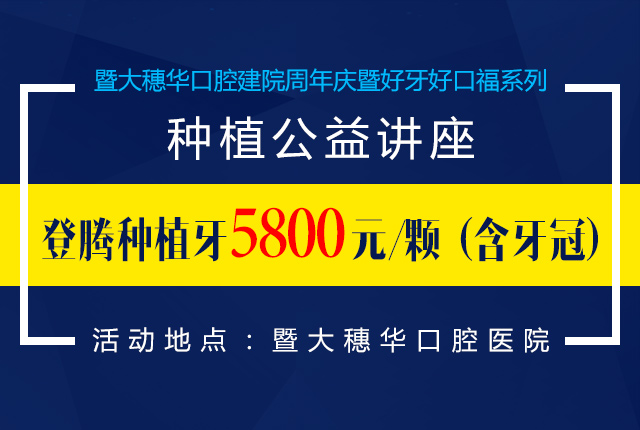 牙齿缺失的危害很多,缺牙还会增加胃肠负担、诱发冠心病。当今理想的修复缺失牙的方法就是种植牙。种植牙外观像真牙一样,功能也与天然牙齿一样坚固,是很多缺牙患者首选的修复方式。为了让更多缺牙患者恢复咀嚼功能,重新拥有像年轻人一样想吃就吃的好口福,值此穗华口腔医院建院两周年庆典之际,穗华口腔医院举行第027期好牙好口福系列·种植公益讲堂,为大家讲授种植牙知识和口腔保健知识,并提供特大福利,优惠回馈广大顾客。