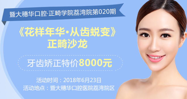 穗华口腔荔湾院区将于6月23日举办穗华口腔医院•正畸学院第20期之«花样年华•从齿蜕变»正畸沙龙活动,届时,邀请到资深矫正专家将为广大牙齿畸形者揭开牙齿矫正的神秘面纱,彻底解除您对牙齿畸形的困扰,还您自信笑容,重塑美丽!