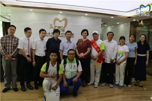 参加启动仪式的领导在穗华口腔医院合影留恋