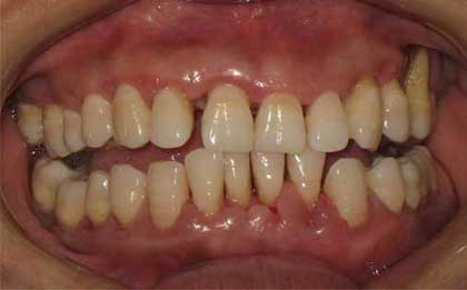 牙周炎的修复和正畸治疗是在牙周基础治疗的基础上,改善患牙的松动、移位及咀嚼无力等症状。此阶段的治疗必须在牙周炎症得到控制的条件下进行,一般在治疗后(手术后)3个月进行。其根本目的是分散合力、消除创伤,建立协调的合关系,建立稳定的平衡合;固定松动牙,修复缺失牙,控制病理性的松动移位,促进牙周病变组织的愈合,恢复咀嚼功能。