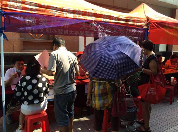 2015年8月8日,穗华口腔医院“微笑广州”公益义诊活动再度延续,穗华口腔公益医疗团队来到越秀区东风二社区,开展“微笑广州”公益义诊活动,为居民们提供免费的口腔检查、身体检查、口腔咨询等,为宣传口腔健康常识,提高居民们口腔保健意识起到了不可忽视的作用。